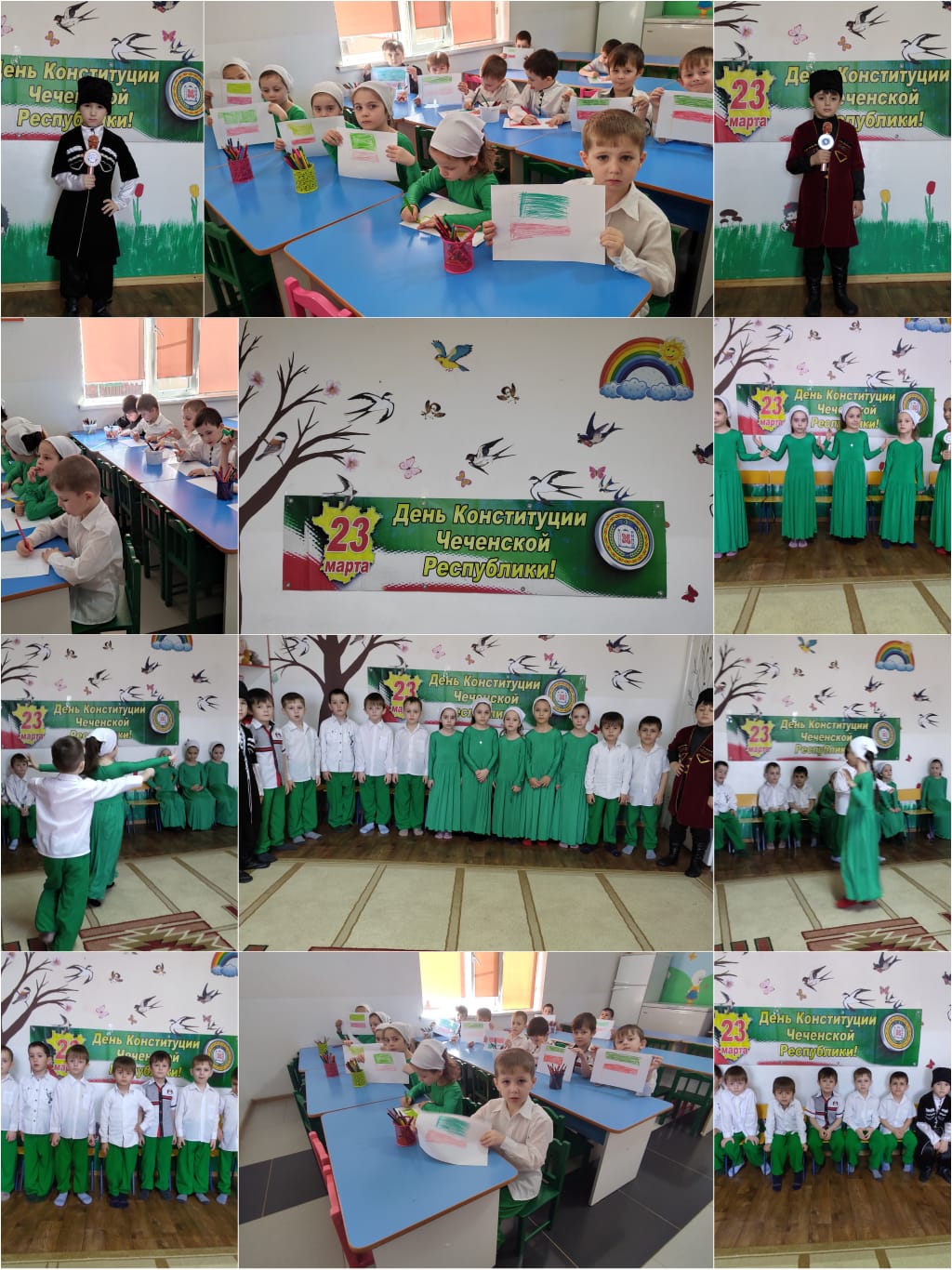 24.03.202223 марта 2022 г. в нашем детском саду было проведено мероприятие «– День Конституции Чеченской Республики» Воспитатели ,провели беседу на тему: «Конституция»,также были проведены выставки рисунков на тему Государственные символы ЧР.Воспитателями, был использован наглядный материал «Символика ЧР, флаг» Дети активно участвовали в предварительной беседе, где в своих рисунках отобразили флаг.